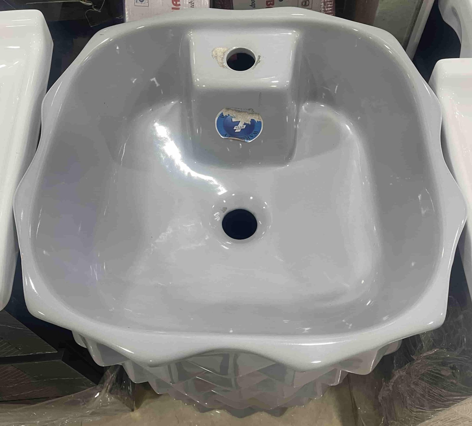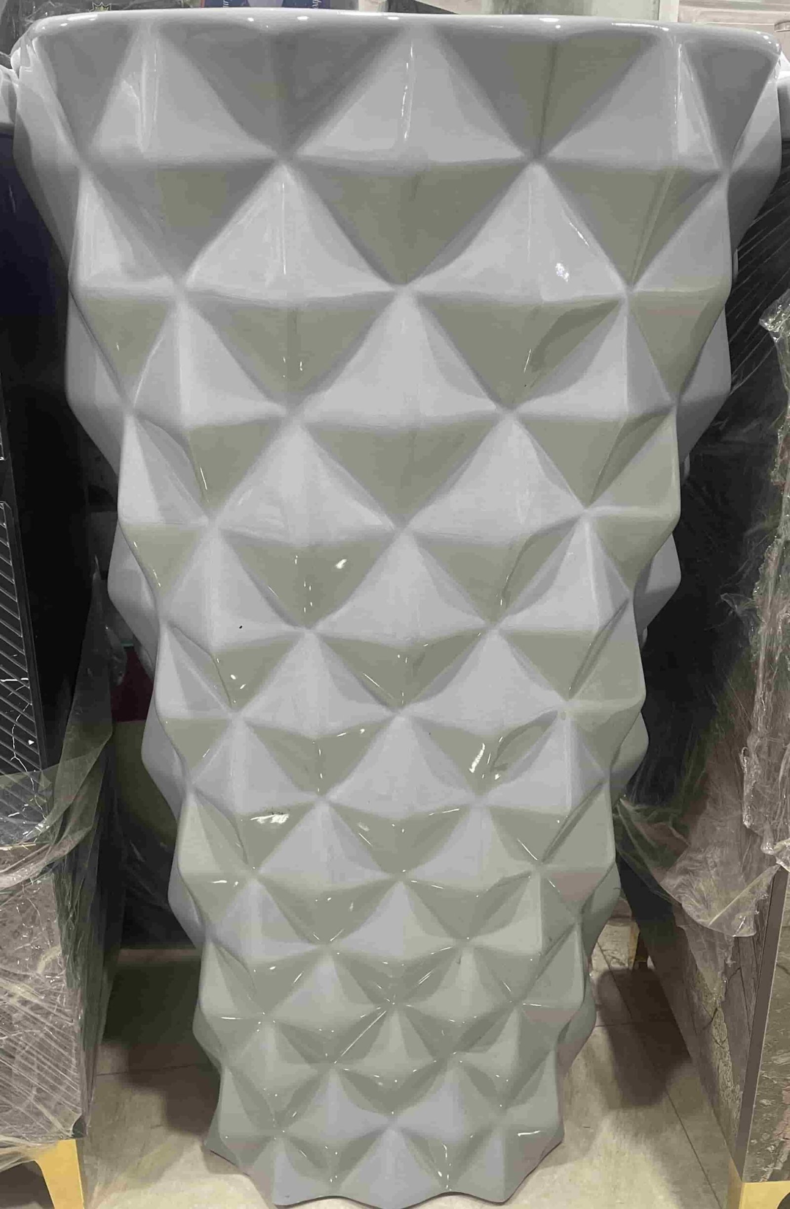 Upgrade your bathroom with this modern diamond-pattern pedestal wash basin, designed to combine luxury aesthetics with everyday functionality. The basin features a 3D geometric textured pedestal that adds a bold, contemporary look, making it a perfect centerpiece for premium bathrooms and wash areas